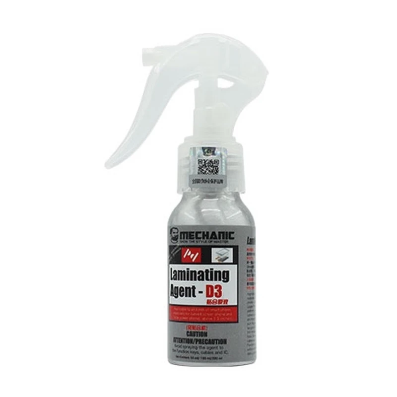 Mechanic D3 laminating agent est un produit conçu pour les techniciens de maintenance confrontés au défi d’éviter les bulles lors du remplacement du verre des écrans LCD. Lors du remplacement de vitres cassées, les bulles peuvent être un problème fréquent qui complique l’obtention d’une finition parfaite.