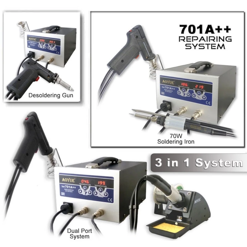 Aoyue 701a++ station de soudage avec fer à souder et dessoudeur intégré