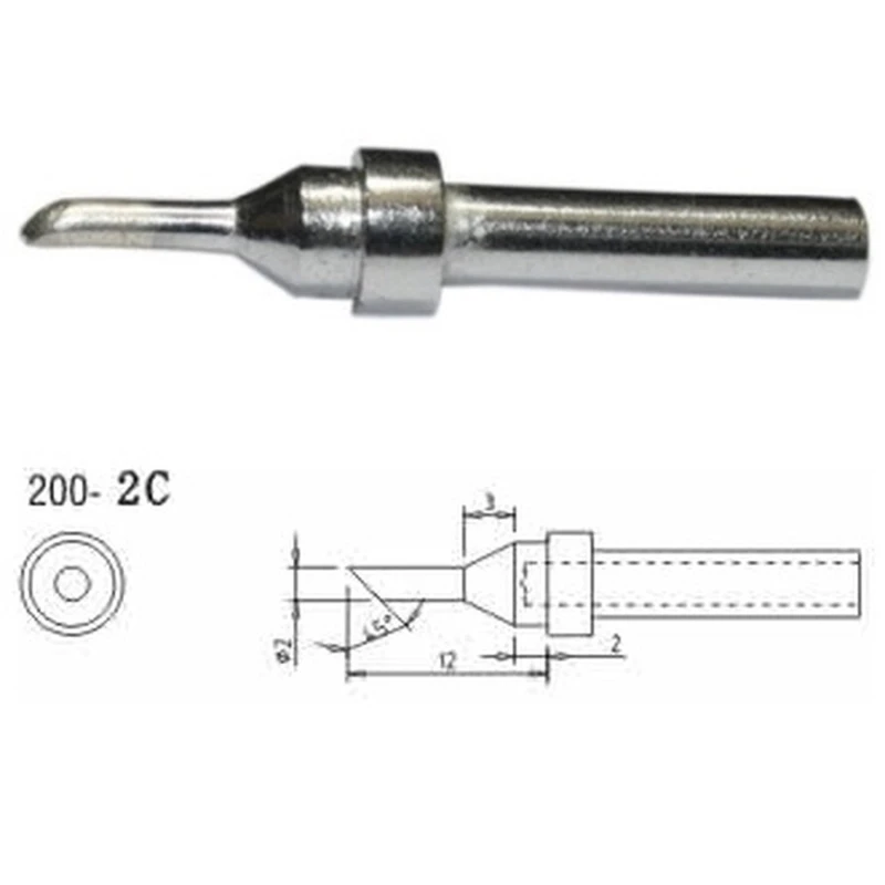La panne est fabriquée en cuivre avec revêtement de fer et nickelage afin d’augmenter sa durabilité et sa résistance à la corrosion. Ses dimensions approximatives sont de 50 mm de longueur totale et 2 mm de diamètre à la pointe (type 2C). Ces valeurs peuvent légèrement varier selon le lot de fabrication.