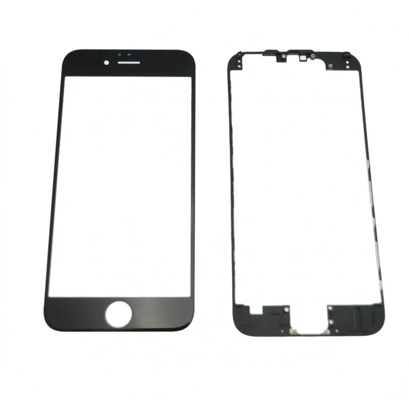 Écran en verre iPhone 6 noir avec cadre adhésif pour réparation
